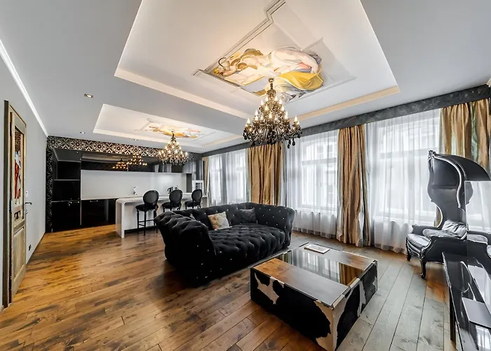 El 2 Bedroom Designer Apartment In Old Town Praga se encuentra a tan solo 650 metros de la Plaza de la Ciudad Vieja y a 5 minutos a pie de la estación de metro Náměstí Republiky.